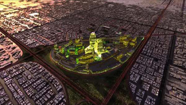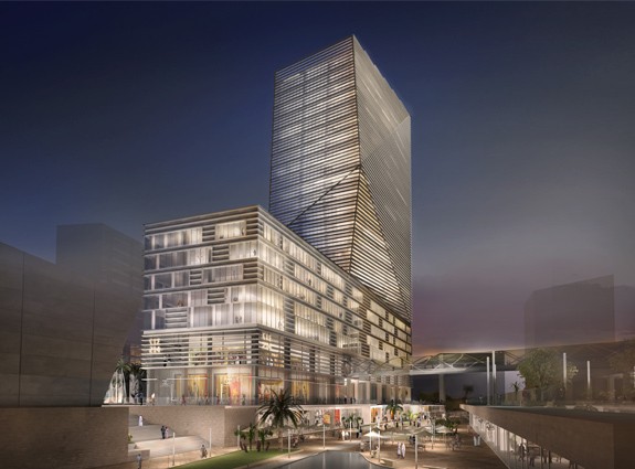 One pedestrian bridge enters the site across the Wadi at the +1 level. The northern edge of the parcel faces a large plaza and a science museum attractor, and the taller tower is situated along this edge of the parcel. The western edge of the site is bound by an access street. The primary vehicular drop off is located along this edge, and the tower lobbies front this main thoroughfare.