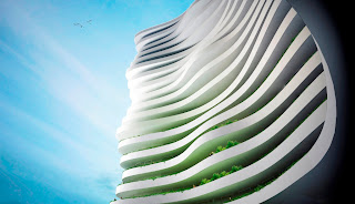 The softly shaped building symbolizes the human values characterizing the revival of Vällingby Parkstad in Stockholm, Sweden.Danish architect 3XN has won the Landmark Project in Sweden, the construction is planned to begin 2011.